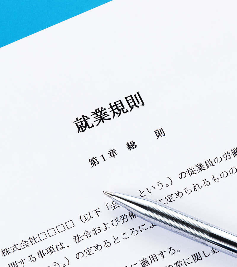 また、法改正にも迅速に対応し、時代や業種に見合った就業規則を作成いたします。